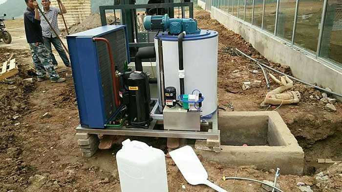 地下下降800米溫度升高至37度左右,地下礦井坑道作業條件惡劣,溫度較高,有毒有害氣體,空氣不流通。使用片冰機對礦井降溫是常見方法之一,簡單方便,能夠持續為礦井降溫。